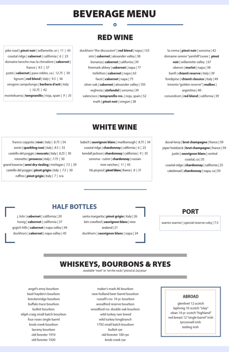 FULL BEVERAGE MENU AVAILABLE AFTER 3:00